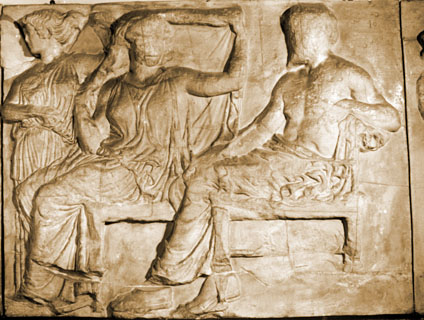 - The rest of this part of the frieze was brought to London in the early 1800s and is now in London, British Museum, Slab V.