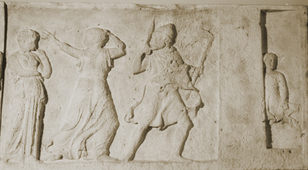 Relief showing two women, a bearded man and a boy.