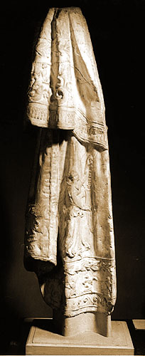 Fragment of a himation, decorated with relief figures, from a statue of Demeter.
