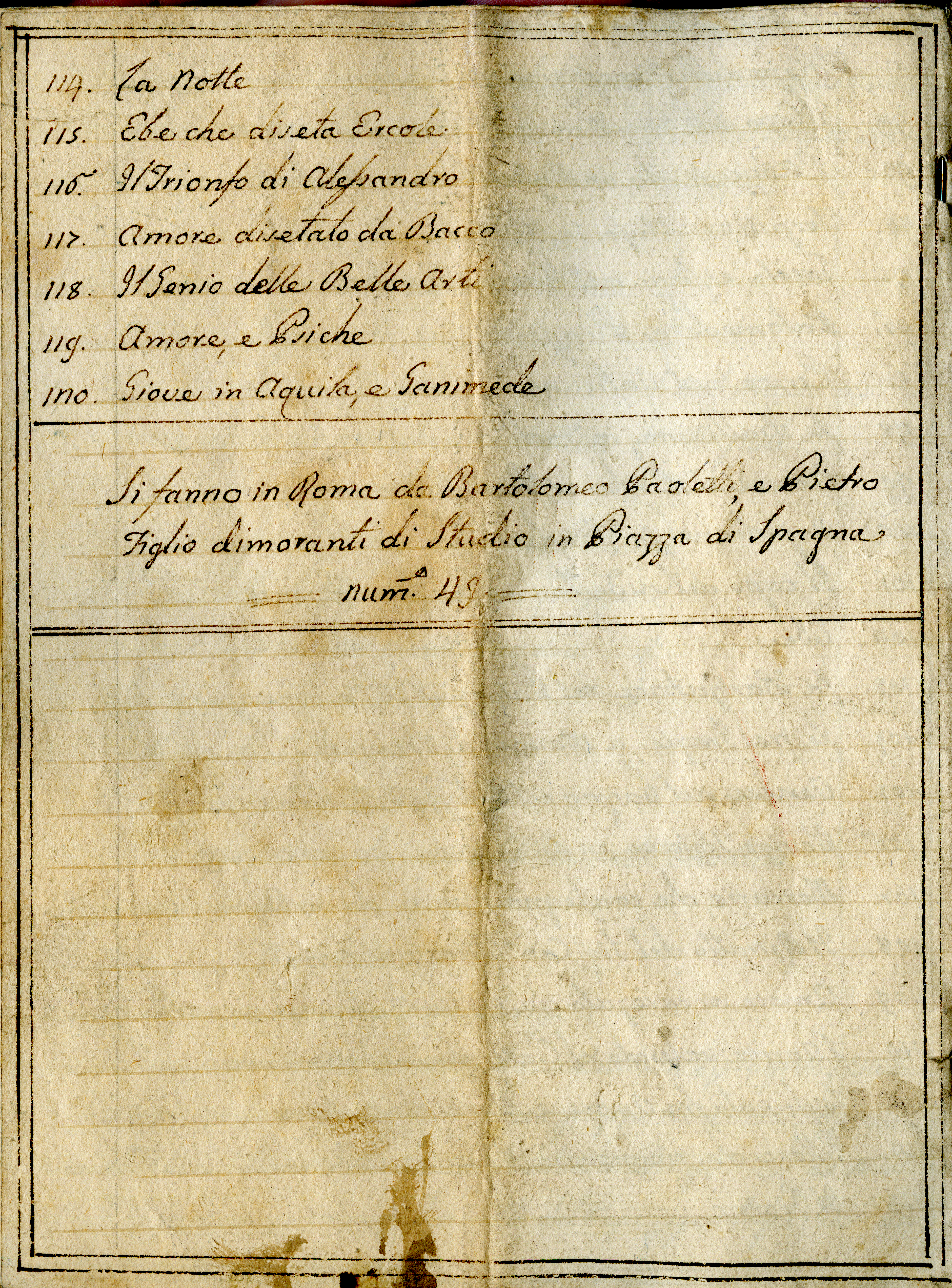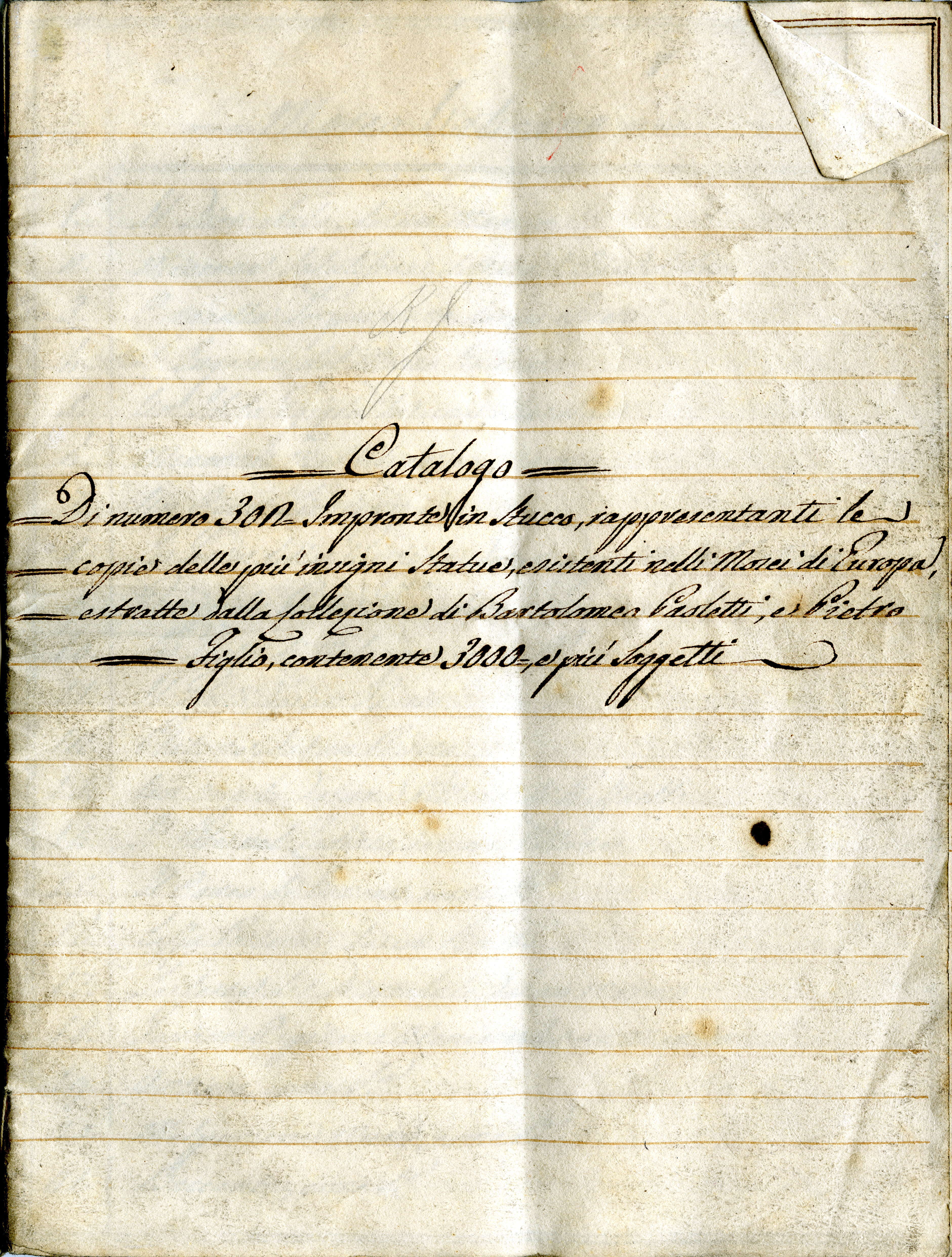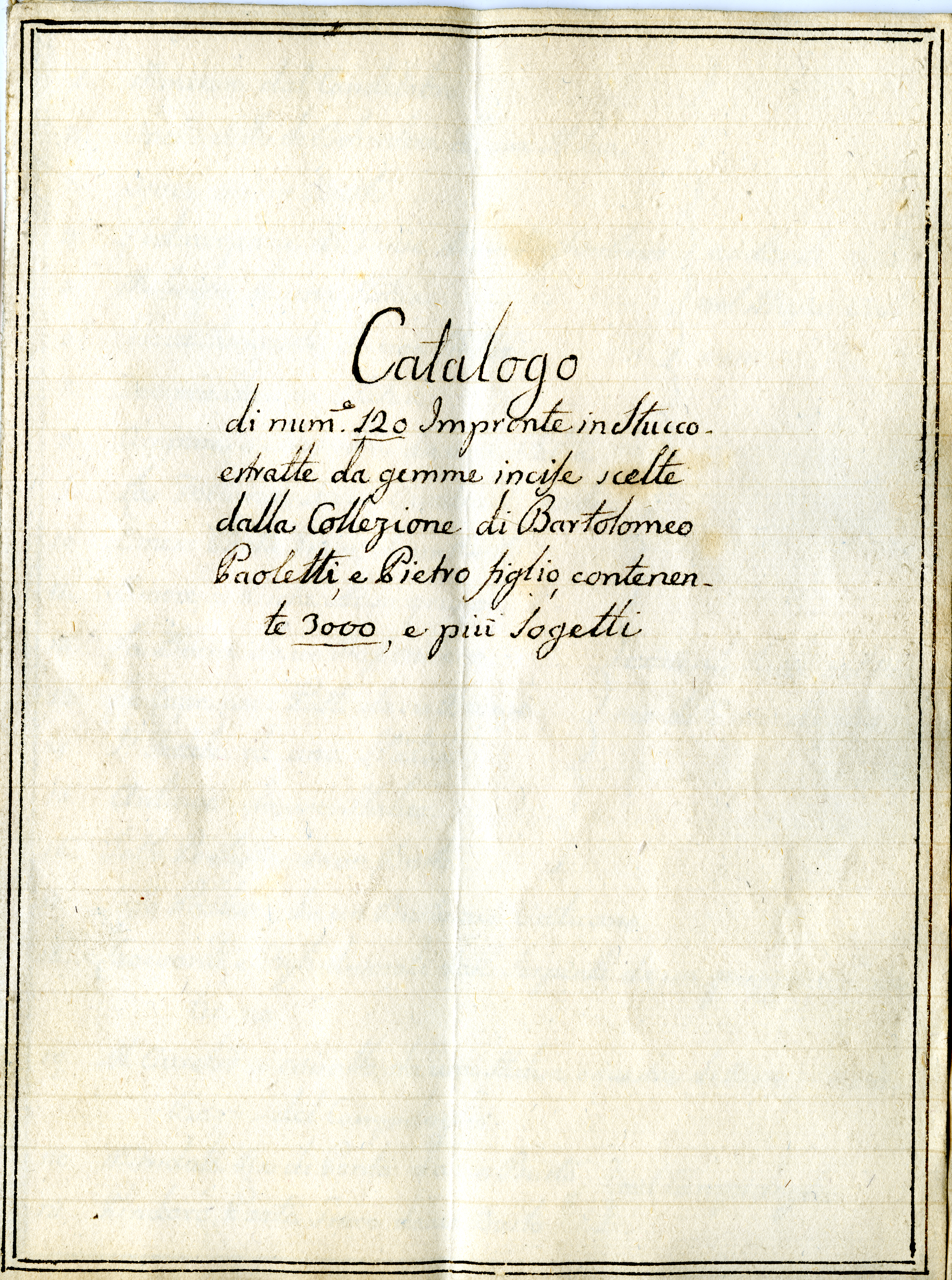 MS catalogue - 'Estratte da gemme incise scelte dalla collezione di Bartolommeo Paoletti e Pietro figlio' (from 3000+ soggetti) address Pa. di Spagna 49