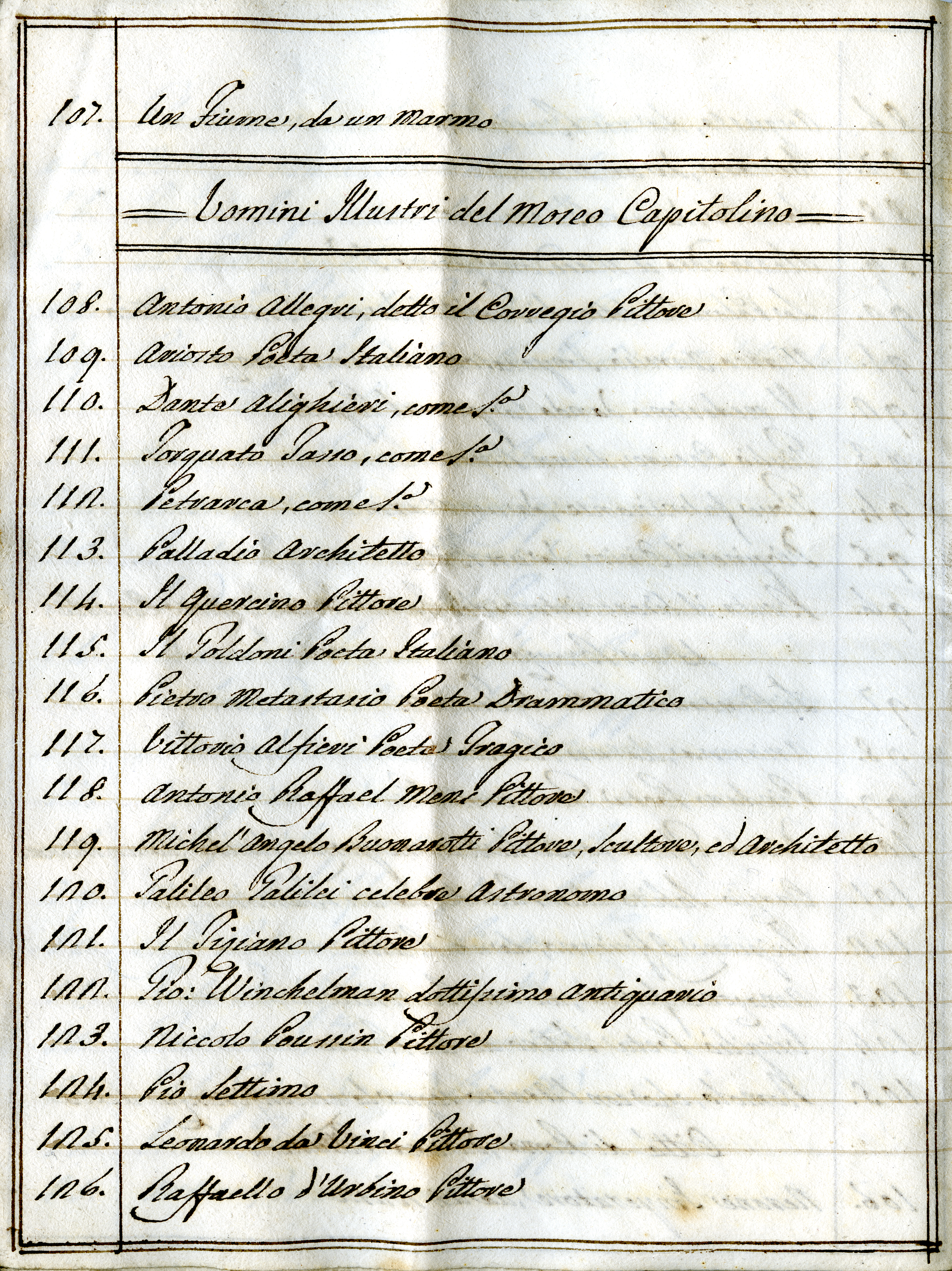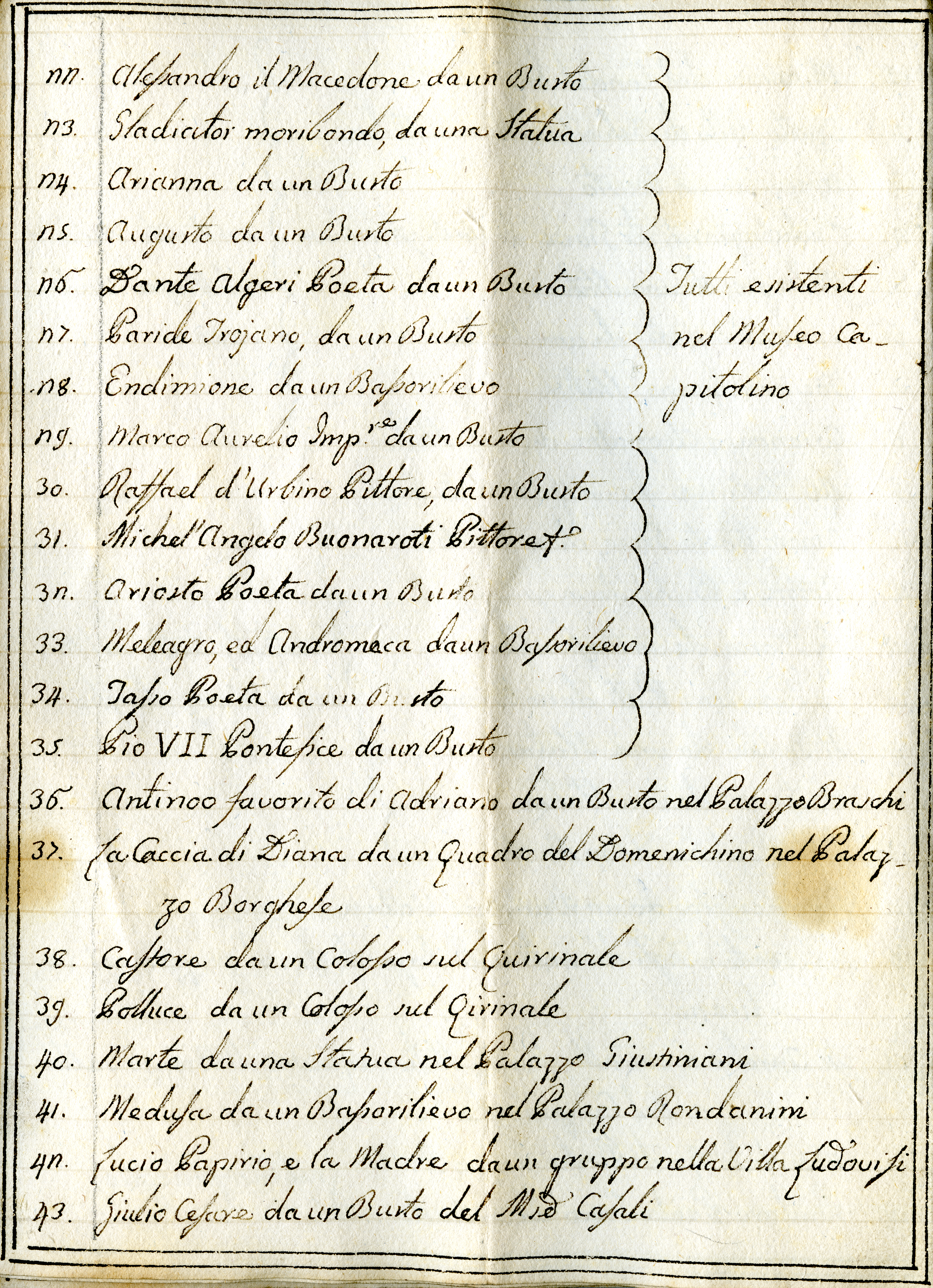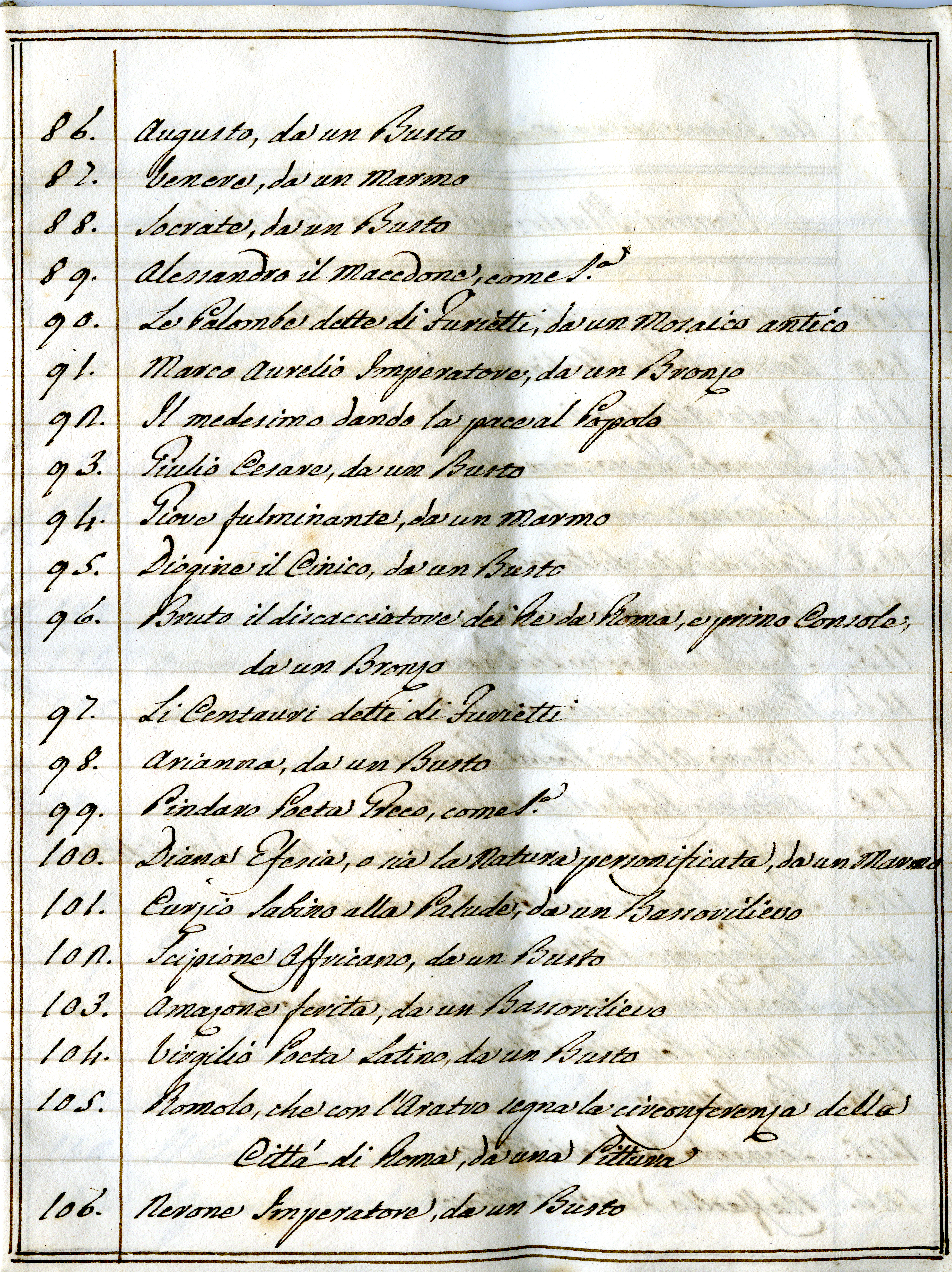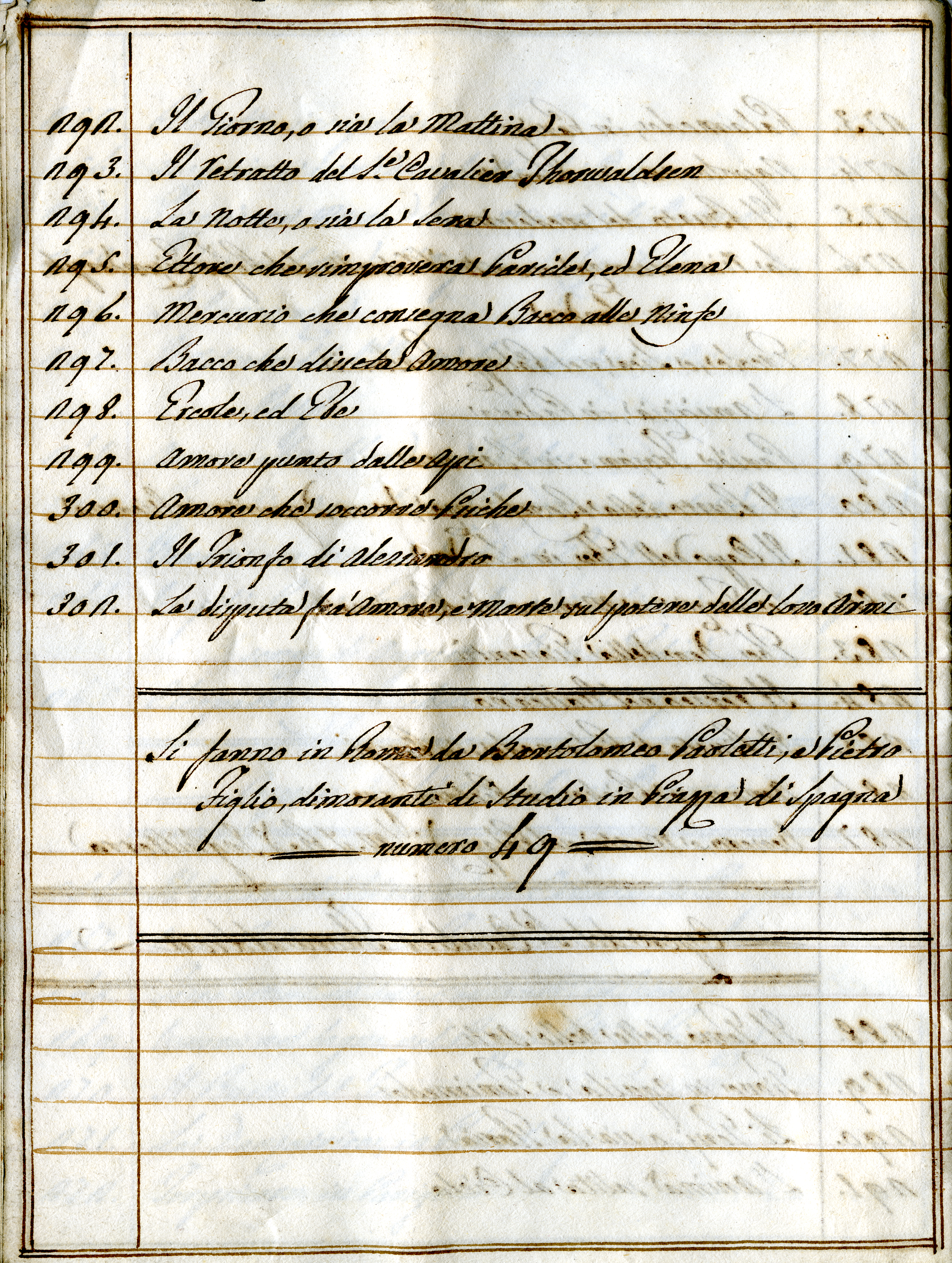 MS catalogue - 'Estratte da gemme incise scelte dalla collezione di Bartolommeo Paoletti e Pietro figlio' (from 3000+ soggetti) address Pa. di Spagna 49