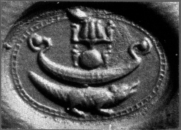 2/X9 Karthago III, no. 97. Clay bulla. Flanked by uraei; papyrus terminals on boat.