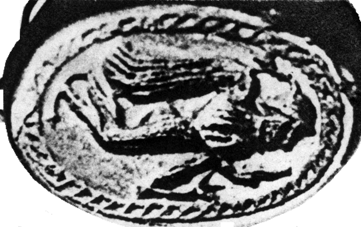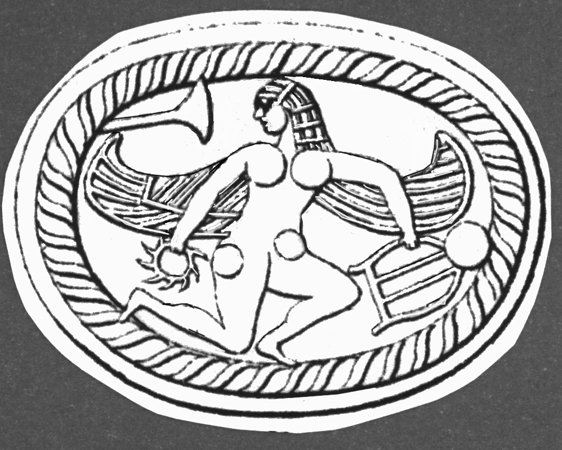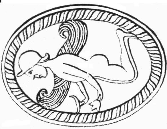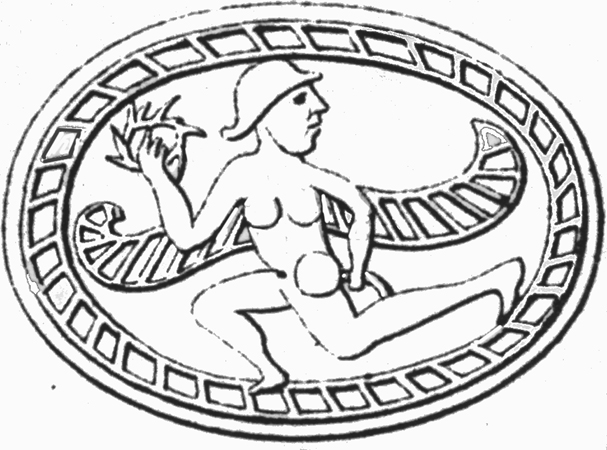35/3 Impression seen. BL. A siren playing pipes, standing on a cross-hatched 'mountain', the latter feature suggesting that the piece belongs here.