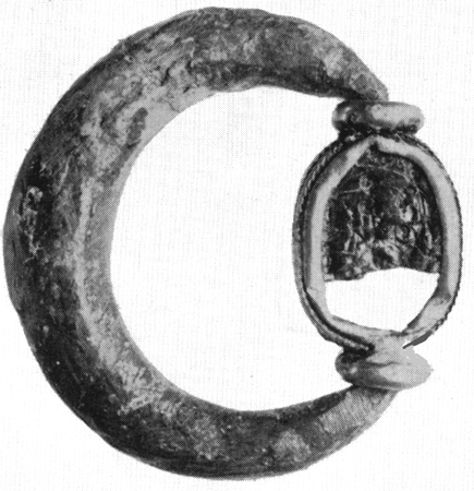 11/99 From Utica. BullArch 1924, 145, fig. 3. BH;EXO; on gold hoop. Horus with disc crown; incense-burner. II