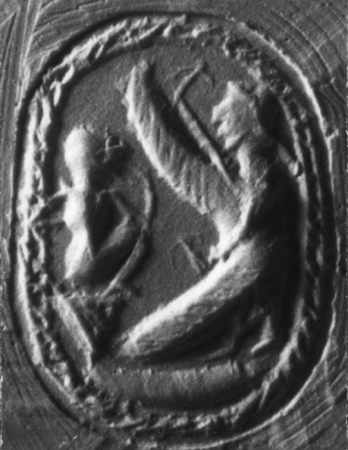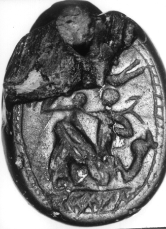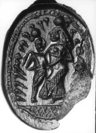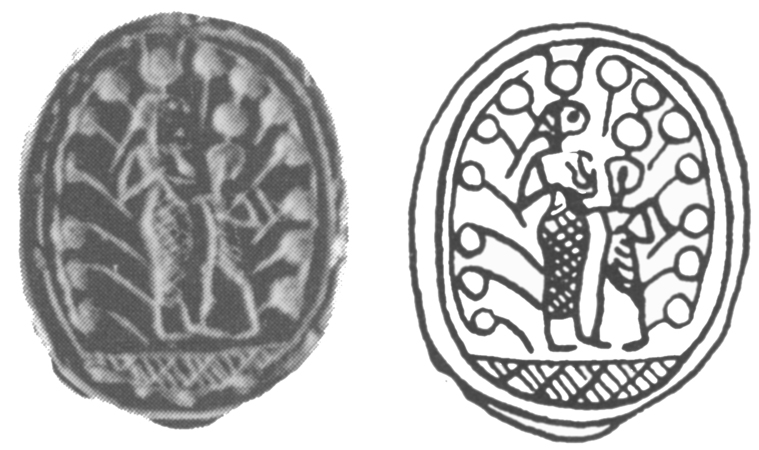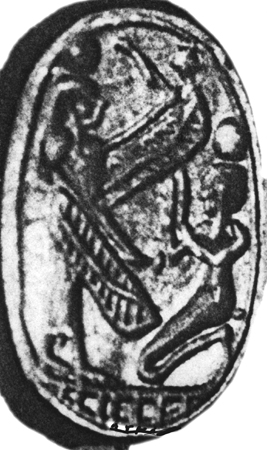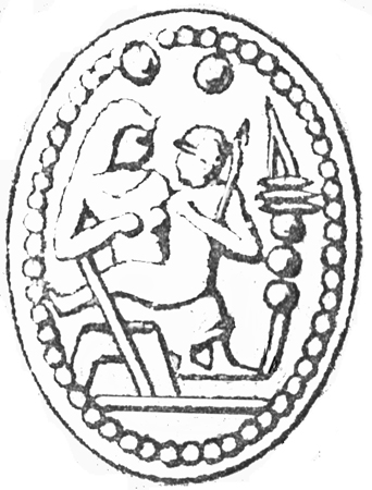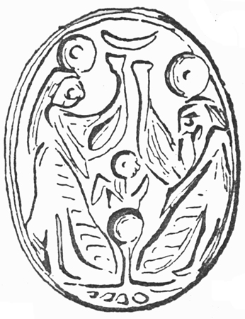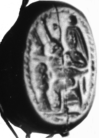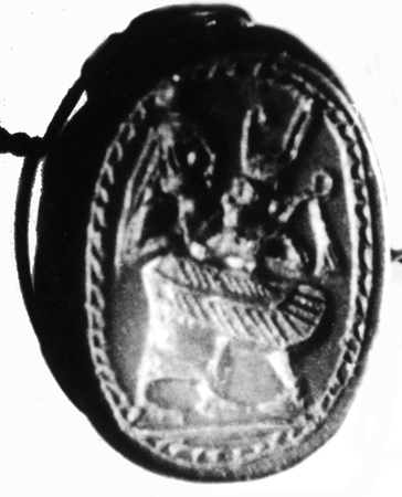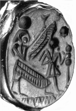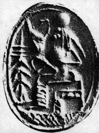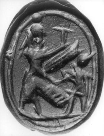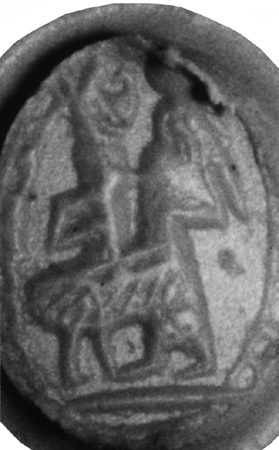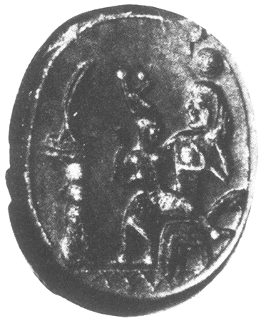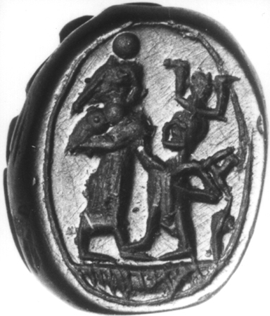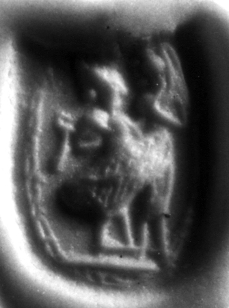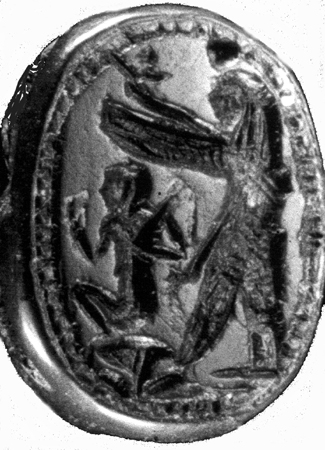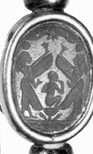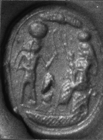 11/X7 London no. 272, pl. 5. Zazoff, pl. 20.4. Agate, with decorated plinth, as Etruscan. BL;EXCR. In a papyrus thicket.