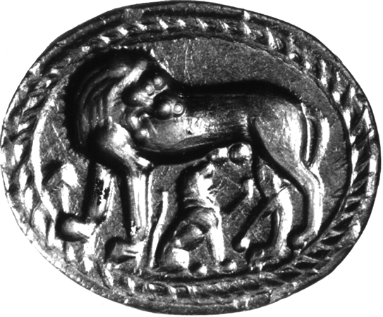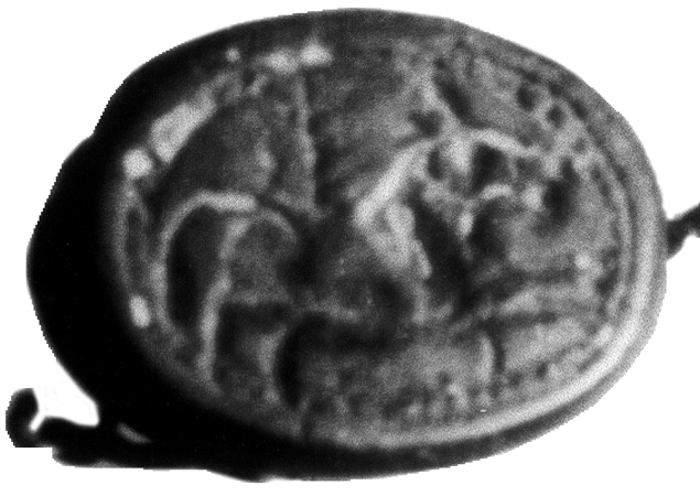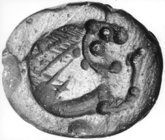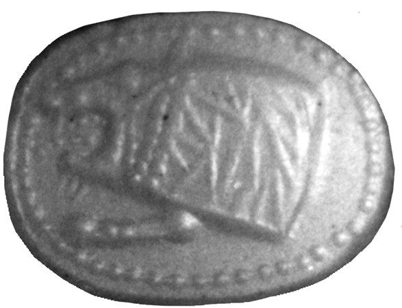 38/X3 Nicosia, from Kition. Kition II, no. 1072. Reyes, fig. 27b. Clay bulla. In thicket.