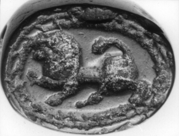 38/46 Oxford III, no. 524 (1890.100), from Tartus. Nunn no. 84. Scaraboid. BH. III