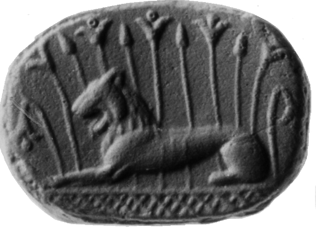 38/X10 Unknown; Impronti III, 146. EXCR. Reclining, facing head, in papyrus thicket.