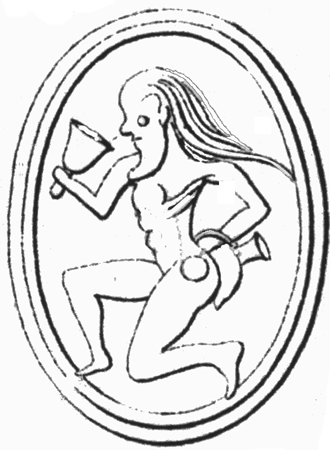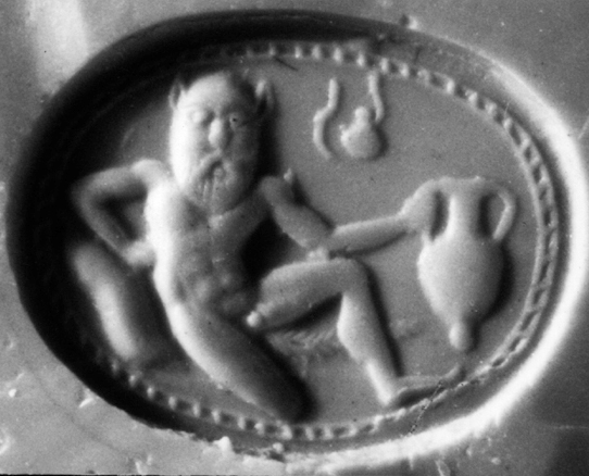 The type as AGGems nos. 103-7, pl. 7. The satyrs have equine feet.