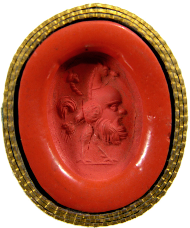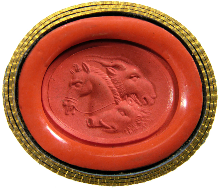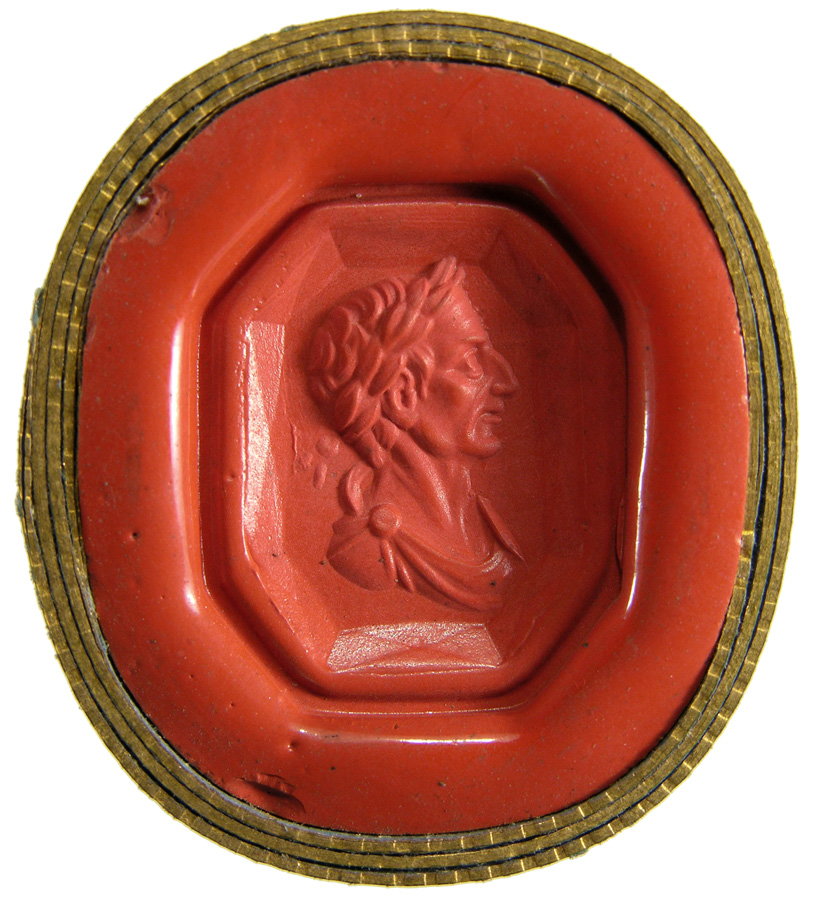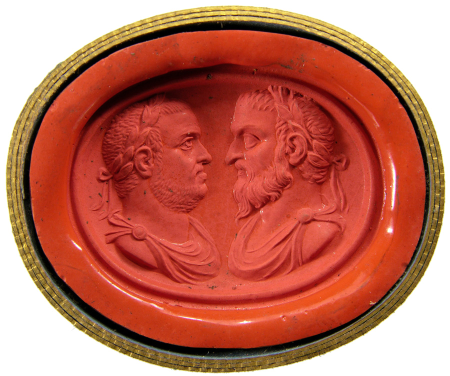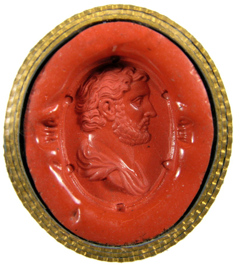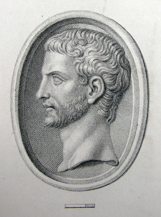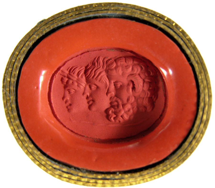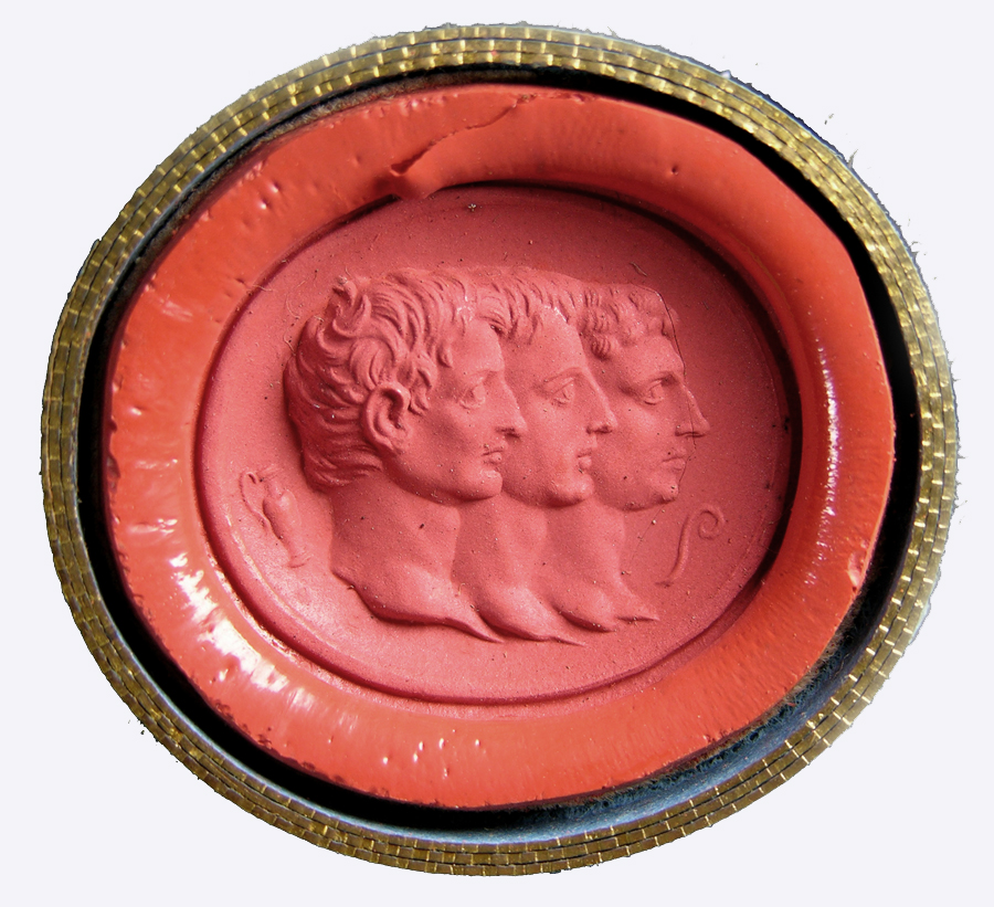Triumvirat: Marc-Antoine, Lepide et Auguste. Cornaline brune
