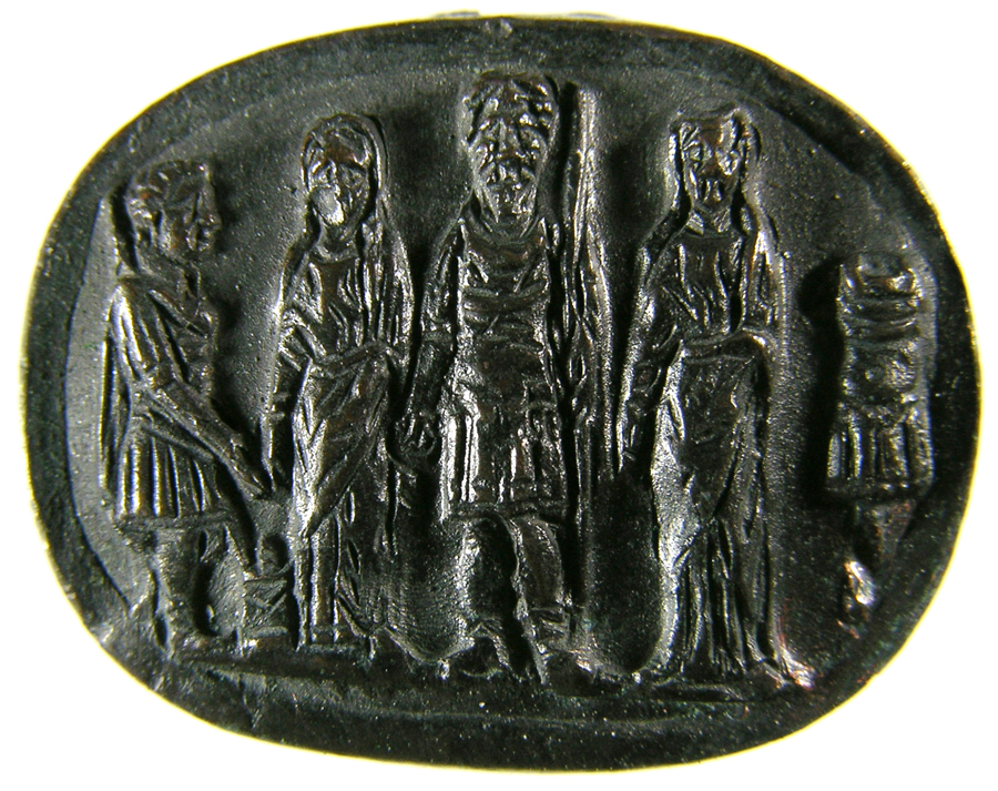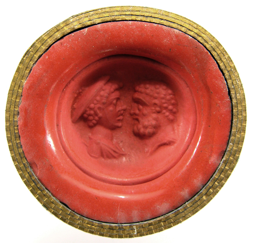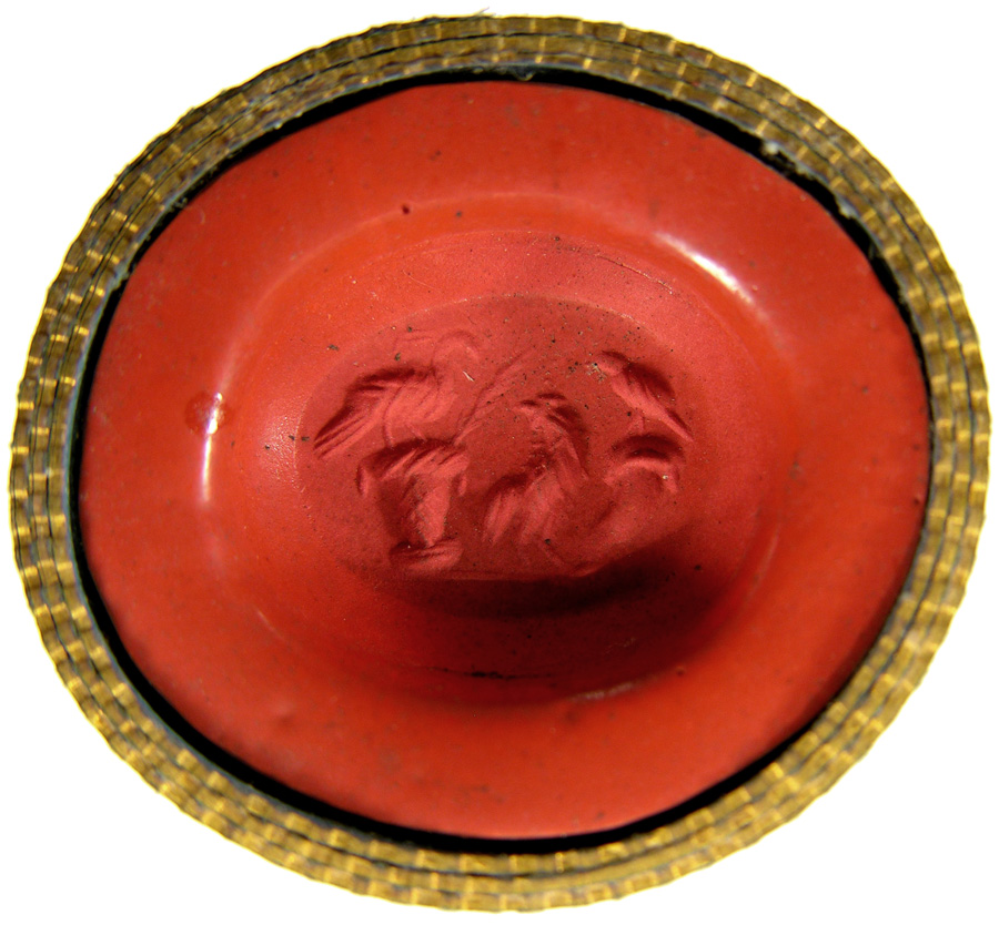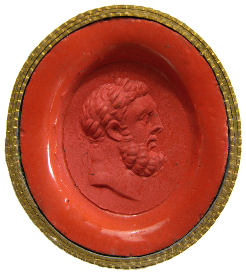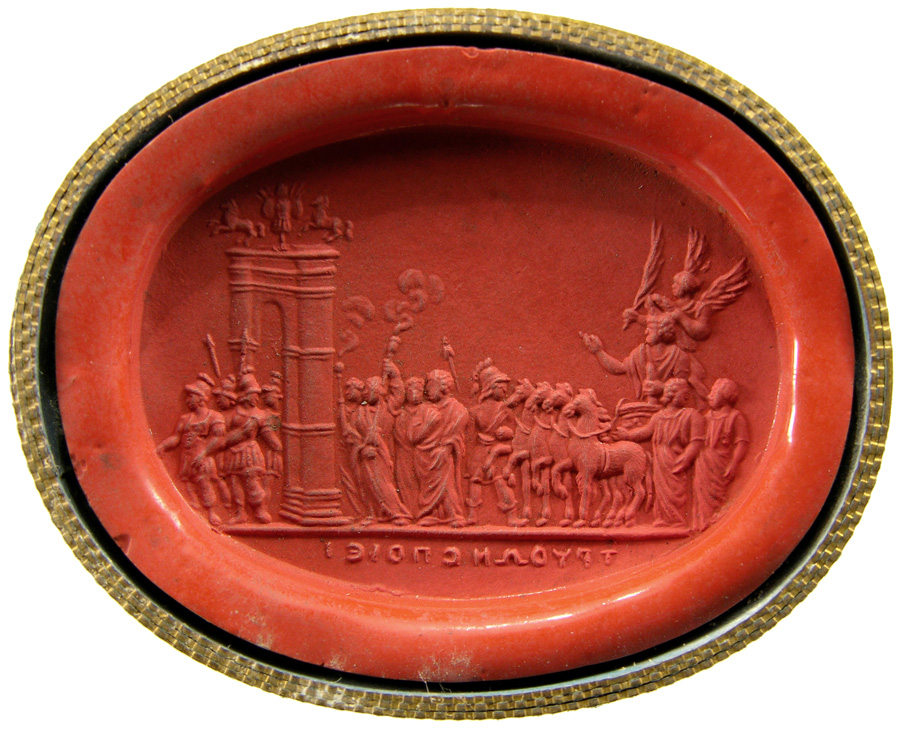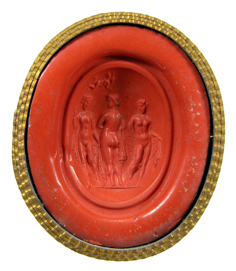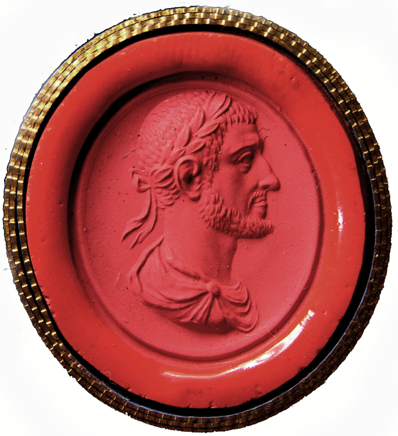 Triumvirat: Marc-Antoine, Lepide et Auguste. Cornaline brune