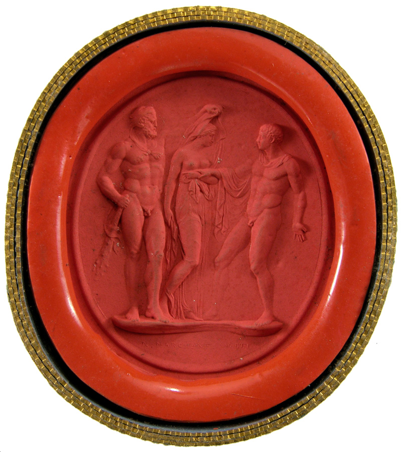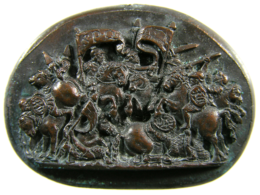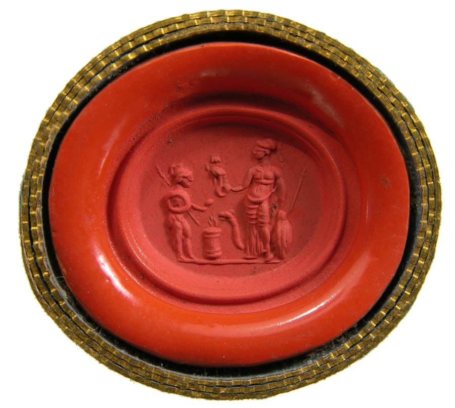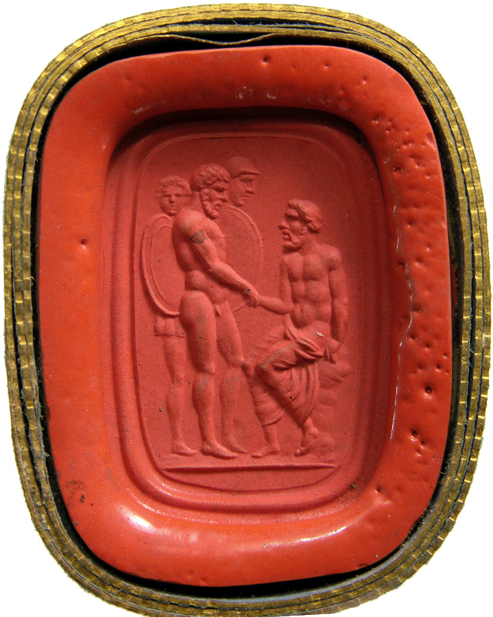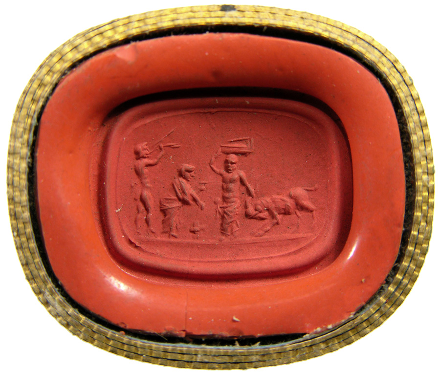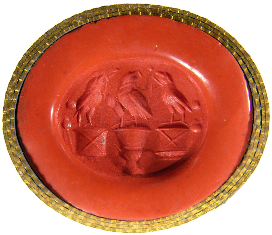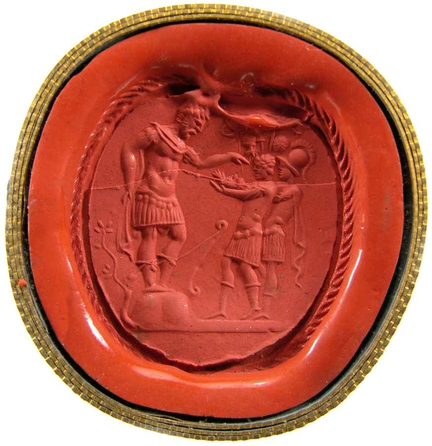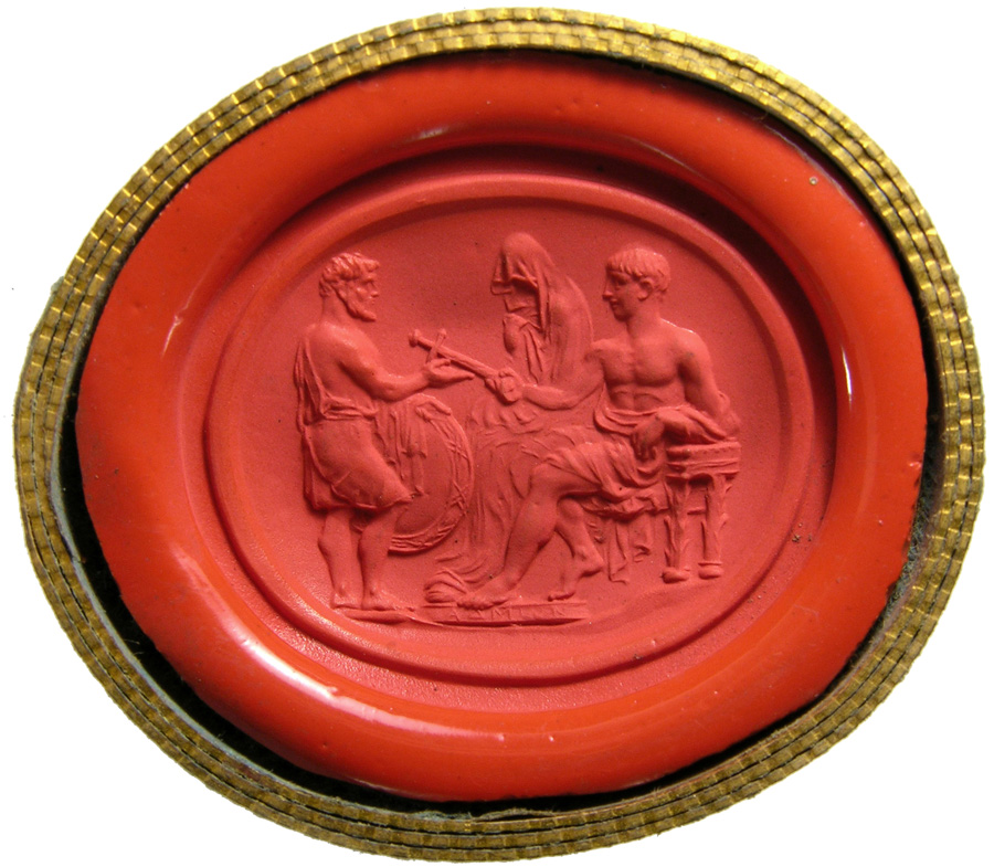 Triumvirat: Marc-Antoine, Lepide et Auguste. Cornaline brune