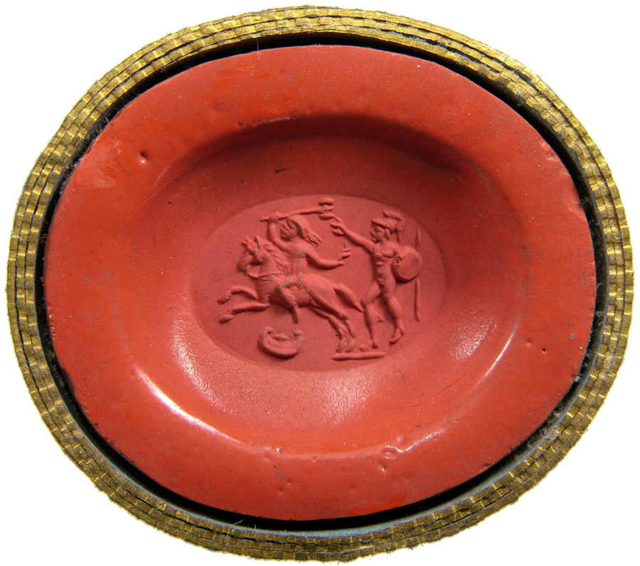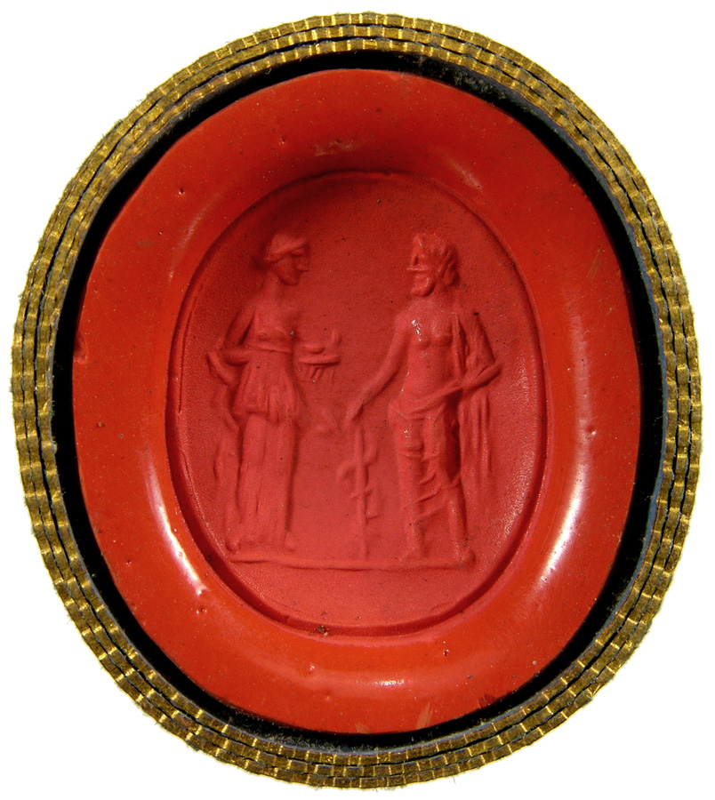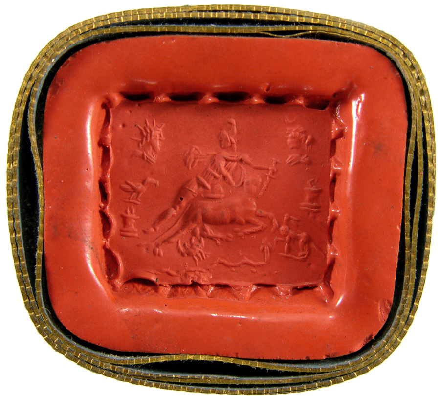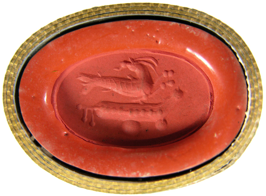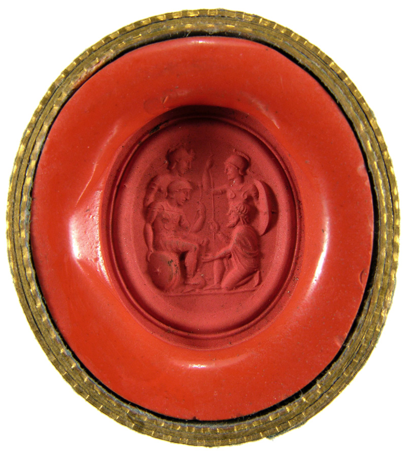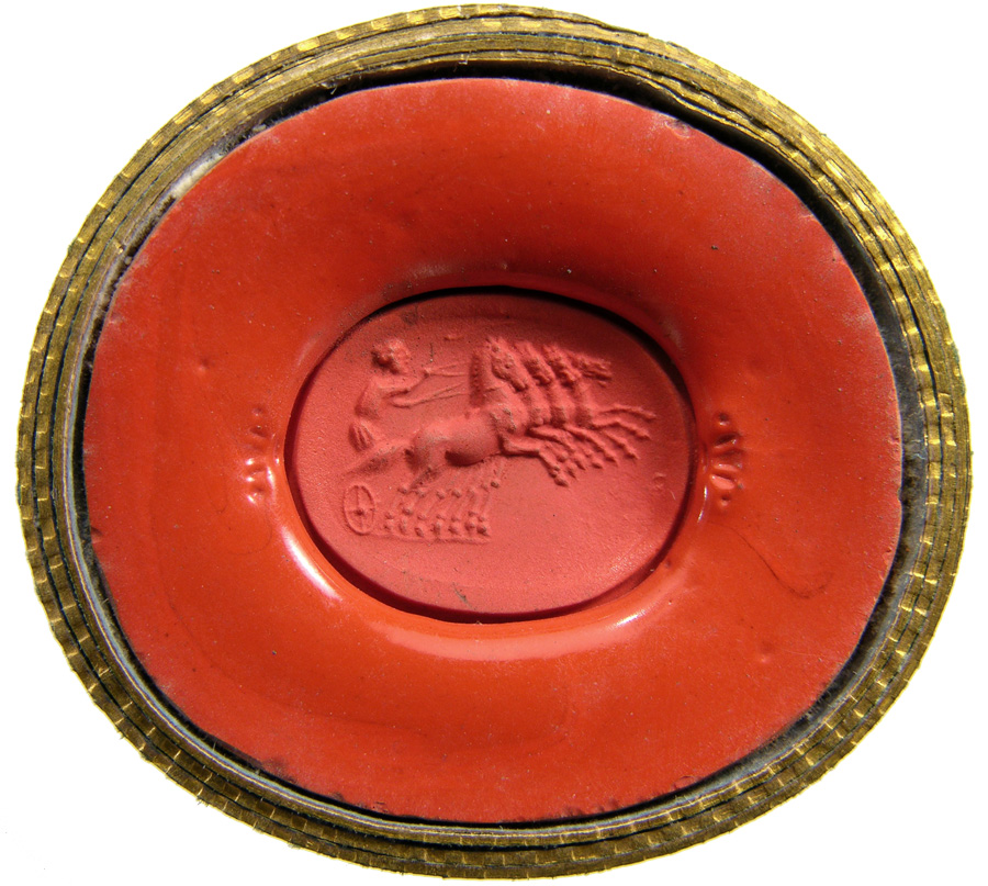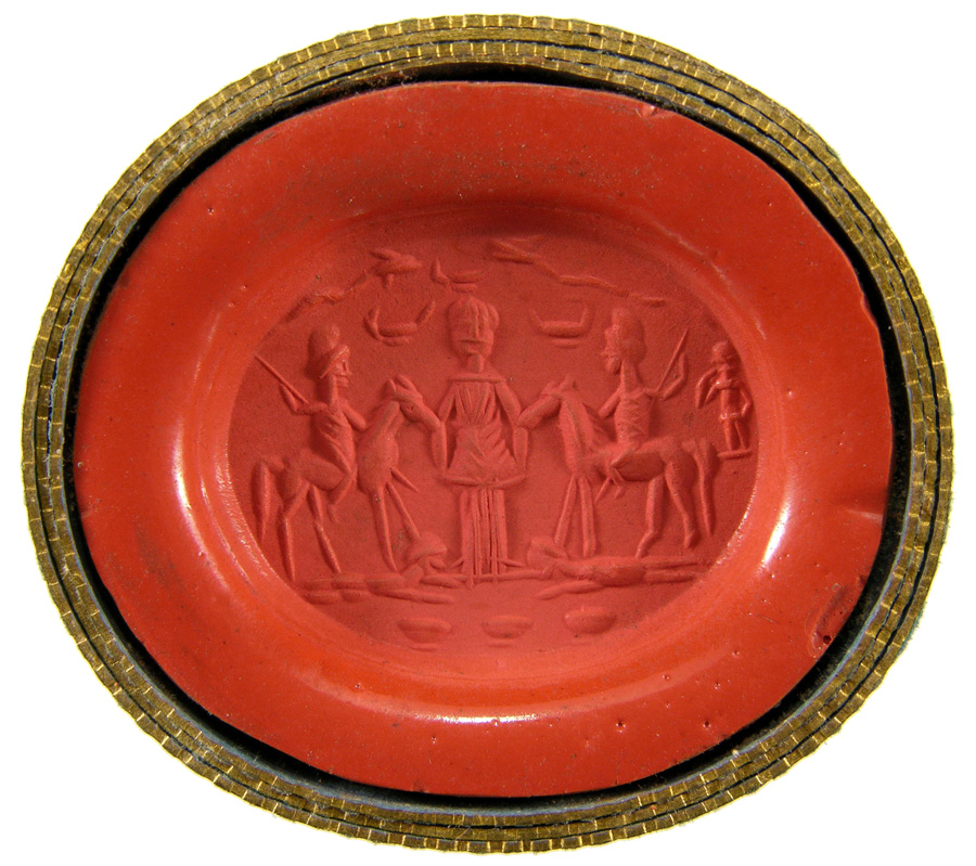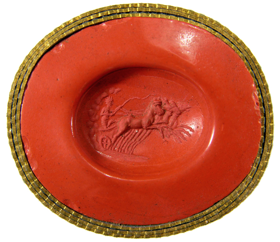 Triumvirat: Marc-Antoine, Lepide et Auguste. Cornaline brune