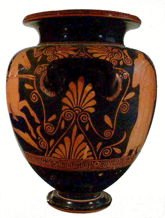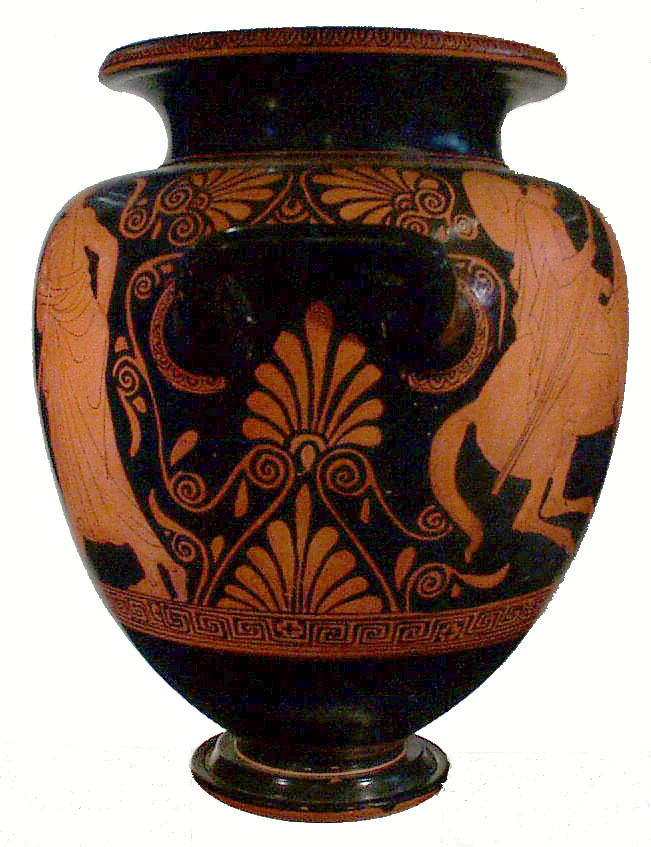 Analysis: like most of the vases assigned to Polygnotos, this one is unsigned, but the shape, pattern-work and figure style show that it belongs to the large group of Polygnotan vases made in the mid century. The underside of the foot has incised letters that are probably the initials of a merchant and the price.