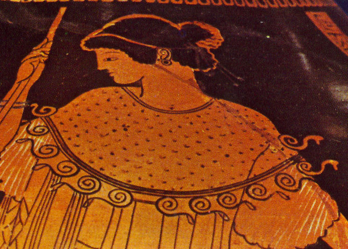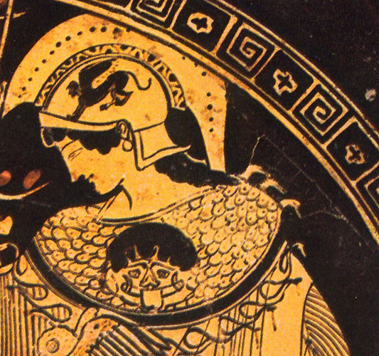 A magic skin worn by Zeus and, in art, especially by Athena, serving as a shield or wrap. It is often shown with snakes around the edges, with scales like a snake, and with the petrifying head of Gorgo at the centre.