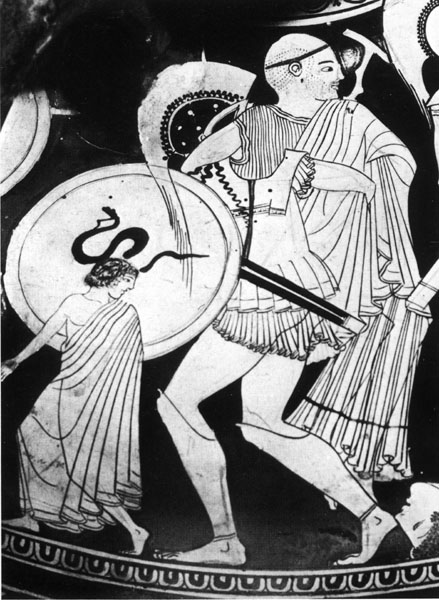 A hero, son of Aphrodite and the Trojan prince Anchises. A leading warrior at Troy, where he is wounded by Diomedes (1) but rescued by his mother. At the sack of Troy he rescues his father by carrying him from the city on his back, with his son, Askanios. They travel west and as Roman Aeneas he becomes a prominent figure in early Roman story, courting (and abandoning) the Carthaginian Queen Dido, then escaping to Italy and taking a role in the legends about the founding of Rome (as told in Virgil's Aeneid).