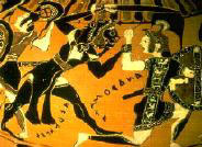 Above right: Detail from an Athenian red-figure clay vase, about 450-400 BC. Ferrara, Museo Nazionale di Spina 5029. © Museo Nazionale di Spina