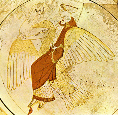 The Greek goddess of Love and child of Zeus, said to have been born from the sea. The wife of Hephaistos, who caught her making love to the god Ares (Homer); she also had affairs with various mortals - Adonis, Phaon, Anchises (by whom she bore Aeneias). She is often shown with her child Eros, and sometimes Peitho (Persuasion). She attends many scenes with a love interest - e.g., Menelaos confronting Helen after Troy. In Greek art from the 4th century BC onwards, she is commonly shown naked, the first artistic nude in the history of art, devised by the sculptor Praxiteles. On many vases a woman attended by Eros might be either the goddess or a mortal bride assimilated to her.