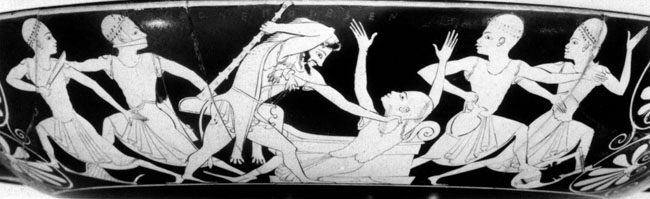 Above: Herakles and Busiris. Detail from Athenian red-figure clay vase, about 525-475 BC. London, British Museum E38. Photo. BM 062897 © London, British Museum
