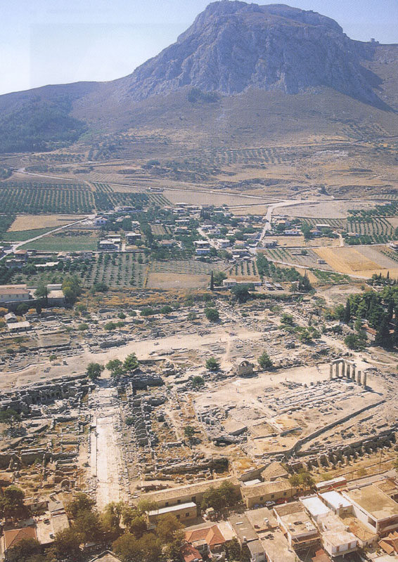 A major state in the north east Peloponnese (south Greece) with the city lying at the foot of a large acropolis (Acrocorinth). Its ports lay on the Gulf of Corinth, facing west, which helps account for its colonizing activity from the 8th century BC on. It also controlled the isthmus for north-south traffic by land, and the overland haulage of shipping east-west. It was a major beneficiary of the early orientalizing styles of Greece and its pottery was dominant in the Greek world from the 8th to early 6th century BC. It was a centre also for early examples of Doric architecture and sculpture. In the 5th century it sided with much of the rest of Greece against Athens; in the 4th it headed an unsuccessful League against the advance of Macedon. Its destruction by L.Mummius in 146 BC marks the beginning of the Romanization of Greece, but it was refounded as a Roman colony in 44 BC, and flourished.