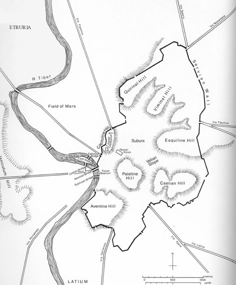 Above: Map of Ancient Rome. Michael Grant, The Roman Forum pg.30 © Michael Grant
