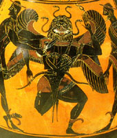 Perseus, escaping with the Gorgo head; they are also known as Gorgons (Sthenno and Euryale).