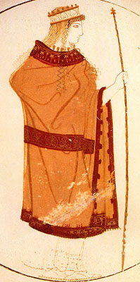 Detail from an Athenian white-ground clay vase, about 440 BC. Munich, Antikensammlungen 2685.Hera and Zeus. From marble frieze of Parthenon. London British Museum. Photo. Max Hirmer.Consort of Zeus and goddess especially associated with marriage. She is generally shown as a stately figure, with crown and sceptre, sometimes making the veiling gesture appropriate to a bride.