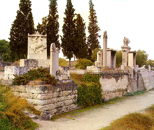 A district of Athens around the main west gate (Dipylon Gate), extending within the walls to the classical Agora, and outside the walls. Named for being a main potters' quarter, but also the site of what was probably Athens' main cemetery, with tombs lining the streets away from the city, and including an area of State Graves for those who had fallen in war.