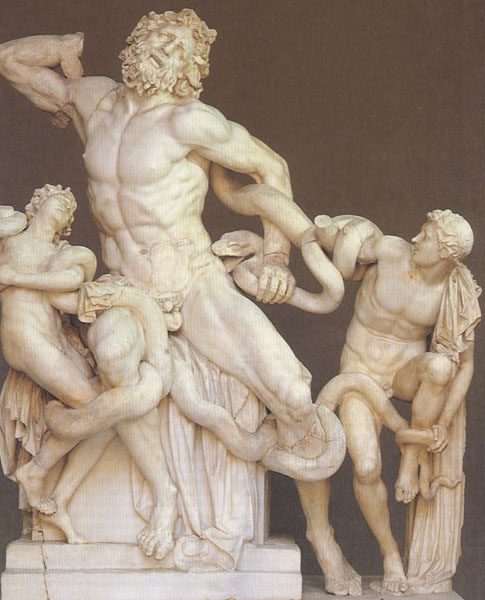 Legendary priest of Apollo at Troy who warned the Trojans against admitting the Greeks' Wooden Horse. Apollo punished him for this attempt to save Troy (or for marrying!) by sending serpents which killed him and his sons. The event is shown in the famous marble copy in Rome of an original Greek 2nd-century BC group.