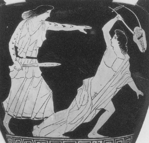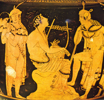 Above right: Detail from Athenian red-figure clay vase, about 475-425 BC. Munich. Antikensammlung 2330. Photo. Mus. WA 3484 © Antikensammlung. Munich.