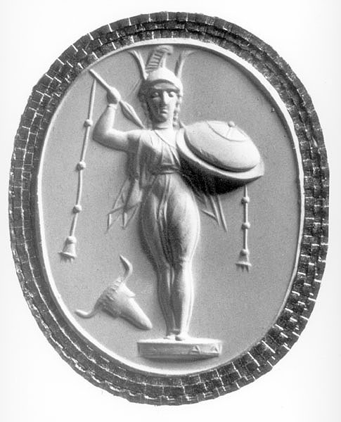 A statue of Athena (Pallas Athena) of a primitive block-like form. The most famous was that at Troy, which was stolen by Odysseus and Diomedes (sometimes shown with two palladia), and subsequently said to have been taken to the west. The term is often applied to other Athena statues.