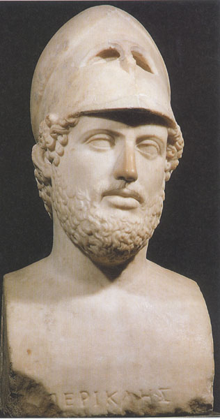 Marble bust of Perikles by Kresilas. London, British MuseumAthenian general and statesman of the mid 5th century BC who led Athens and her allies to victory over the Persians after their invasions of Greece in 480/479 BC. It was at his suggestion that the Athenians rebuilt the temples destroyed by the Persians in Athens and Attica, including the Parthenon. He died in 429 BC.
