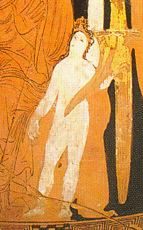 Above: Detail from an Athenian red-figure clay vase, about 340 BC. St. Petersburg, State Hermitage Museum 1792 © State Hermitage Museum.