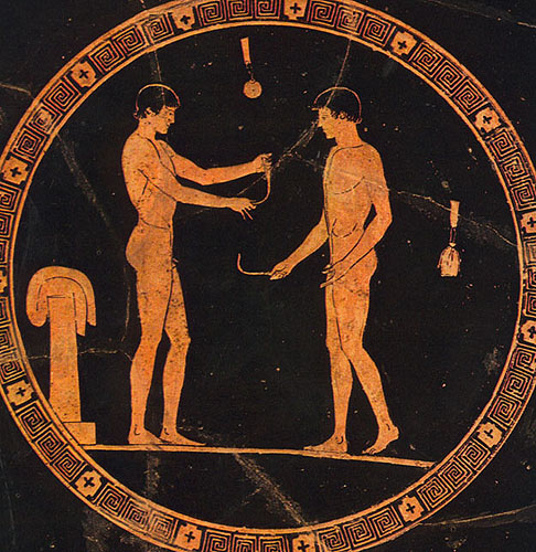 Above right: Detail from an Athenian red-figure clay vase, about 460 BC. Vatican 16558 © Musei Vaticani