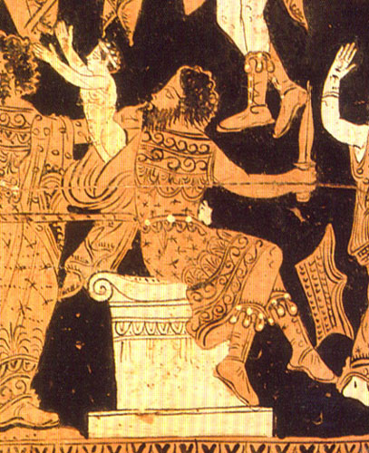 Above: Telephos and the infant Orestes. Detail from an Athenian red-figure clay vase, about 380-360 BC. Boston Museum of Fine Arts © Boston Museum of Fine Arts