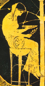 Above: Detail from an Athenian red-figure clay vase, about 430 BC. Berlin, Antikensammlung F2538. © Antikensammlung, Berlin Licence Plate 11 UK 1007 199