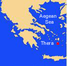 An island of the Greek Cyclades (modern Santorini). An important Bronze Age centre (Acroteri). The island was torn apart by its volcano around 1600 BC. Its later history is as a Dorian settlement, much dependent on Sparta.